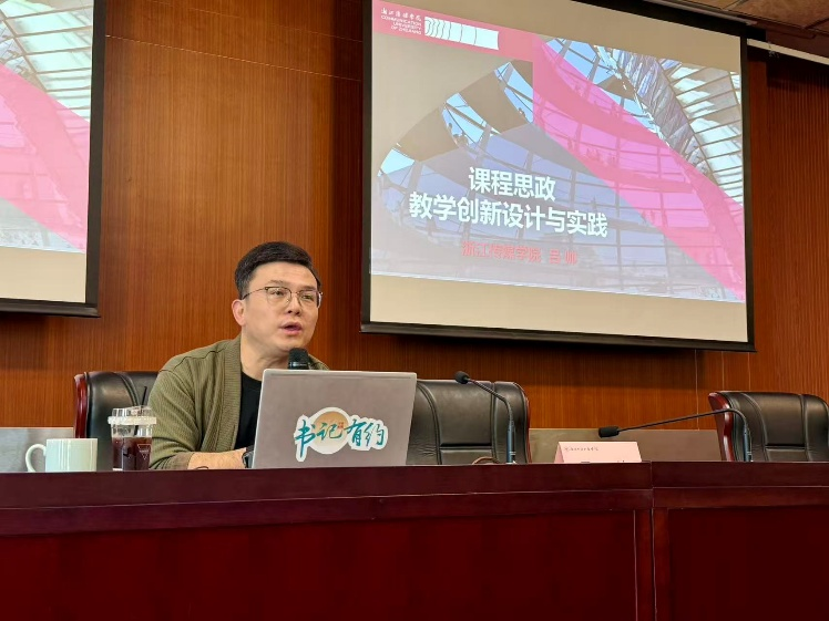 为提升教师课程思政设计与实施能力,11月13日14:00—16:00,教师教学发展中心在钱塘区教学综合楼405举办专题培训,参训教师100余人。主讲人为浙江传媒学院播音主持艺术学院副院长、硕士生导师吕帅副教授,活动由谢承睿主持。